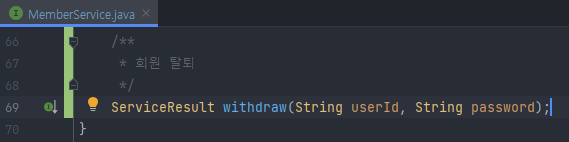 - 회원 탈퇴를 위한 서비스 인터페이스 생성