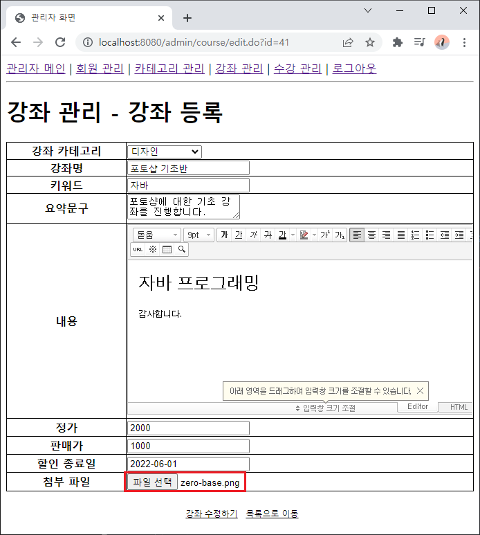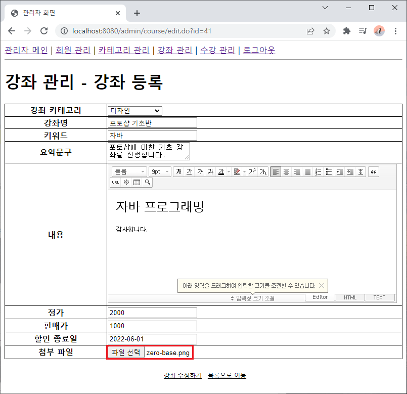 | [Zero-base] 8-6. 강좌 관리 - 강좌별 강좌 신청 내역 구현 (0) | 2022.03.03 |