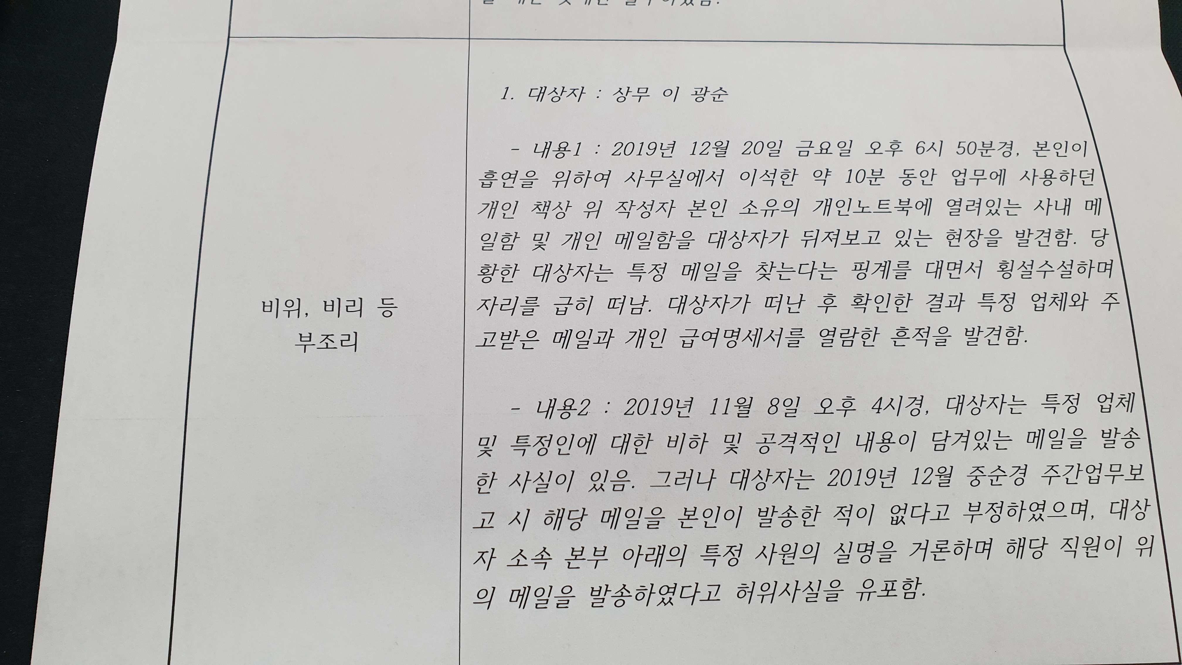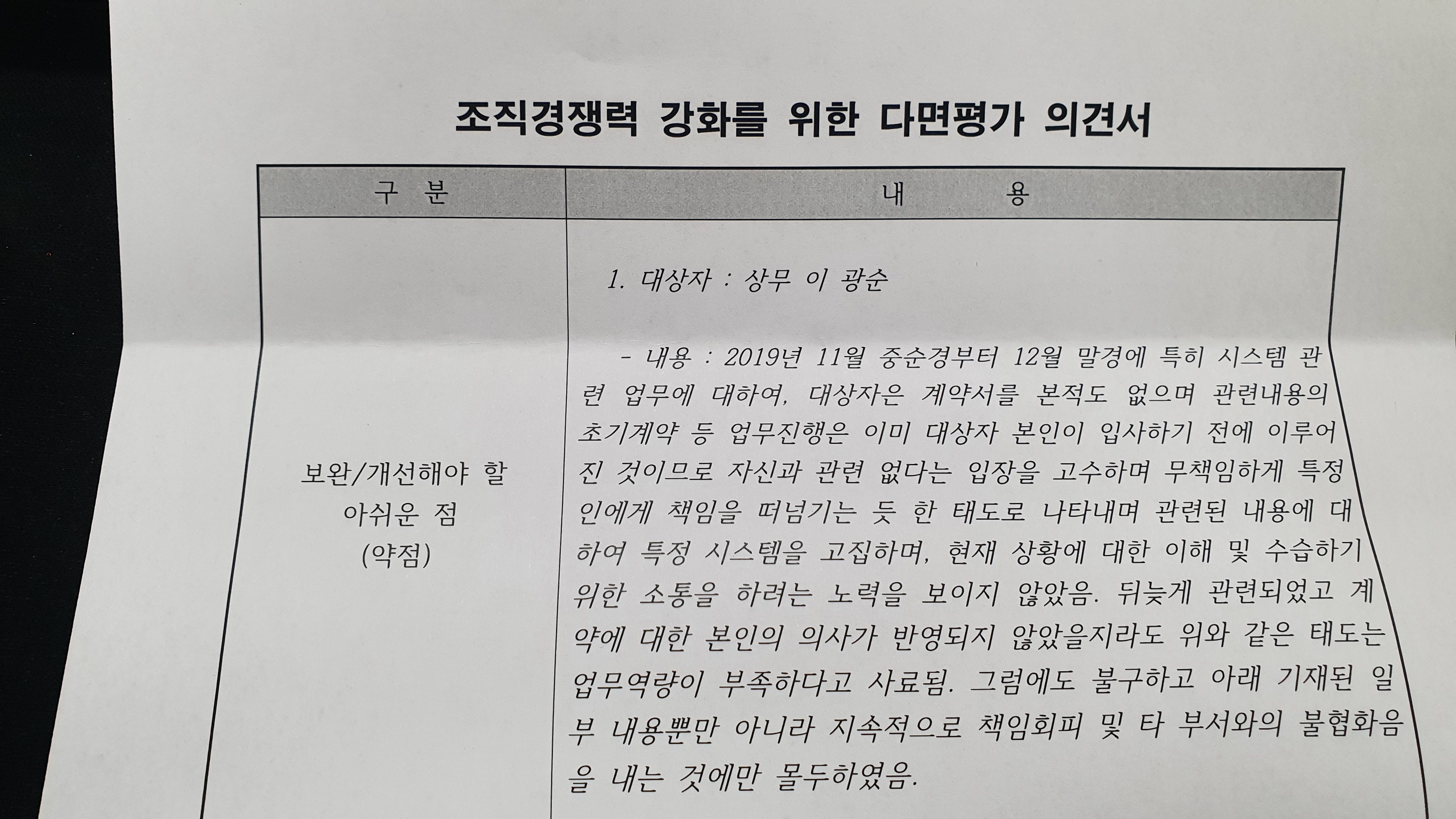 2월 12일, 조직경쟁력 강화를 위한 다면평가 의견서