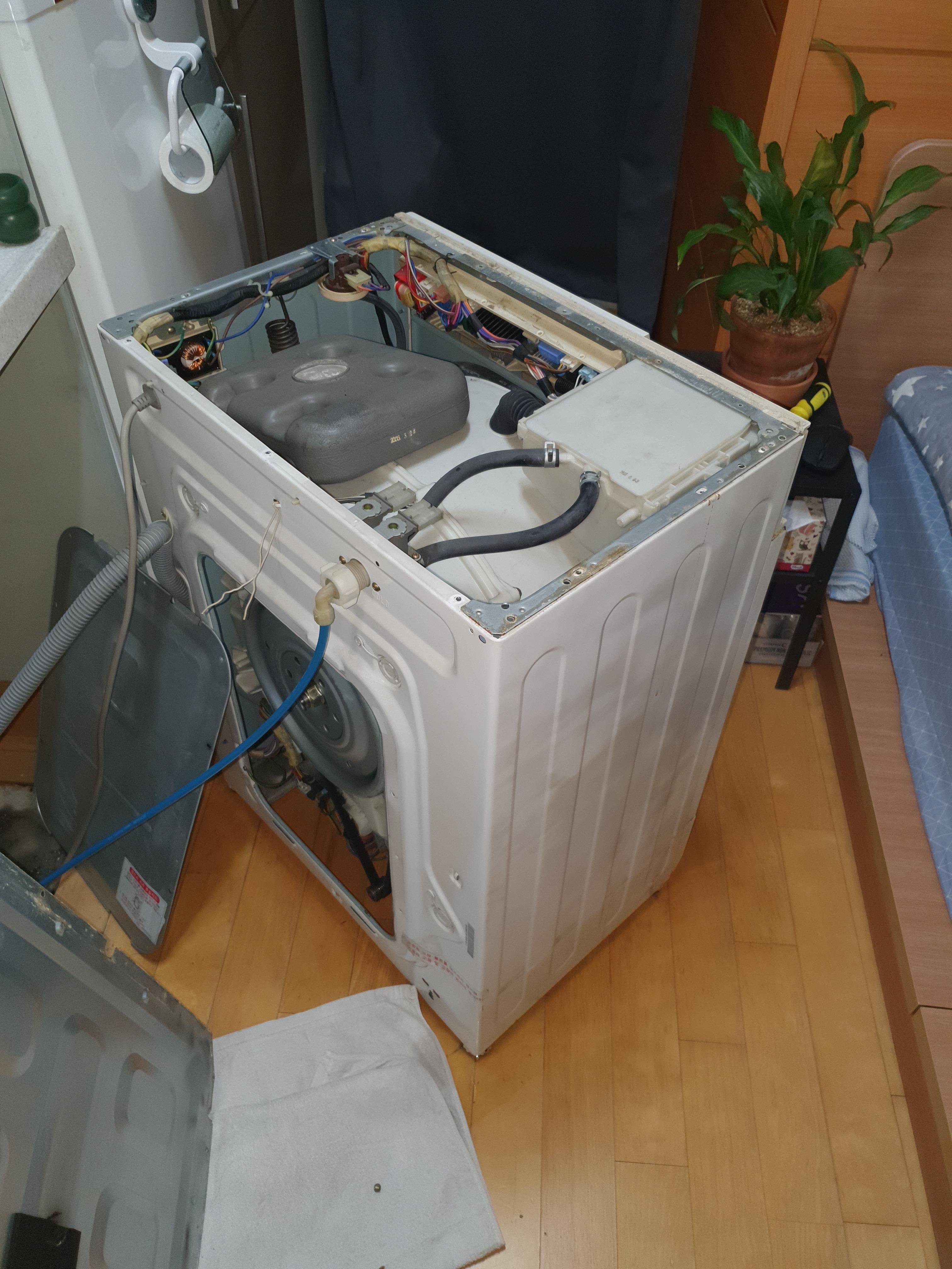 세탁기에서 물세서 열어서 빠진 호수 연결함