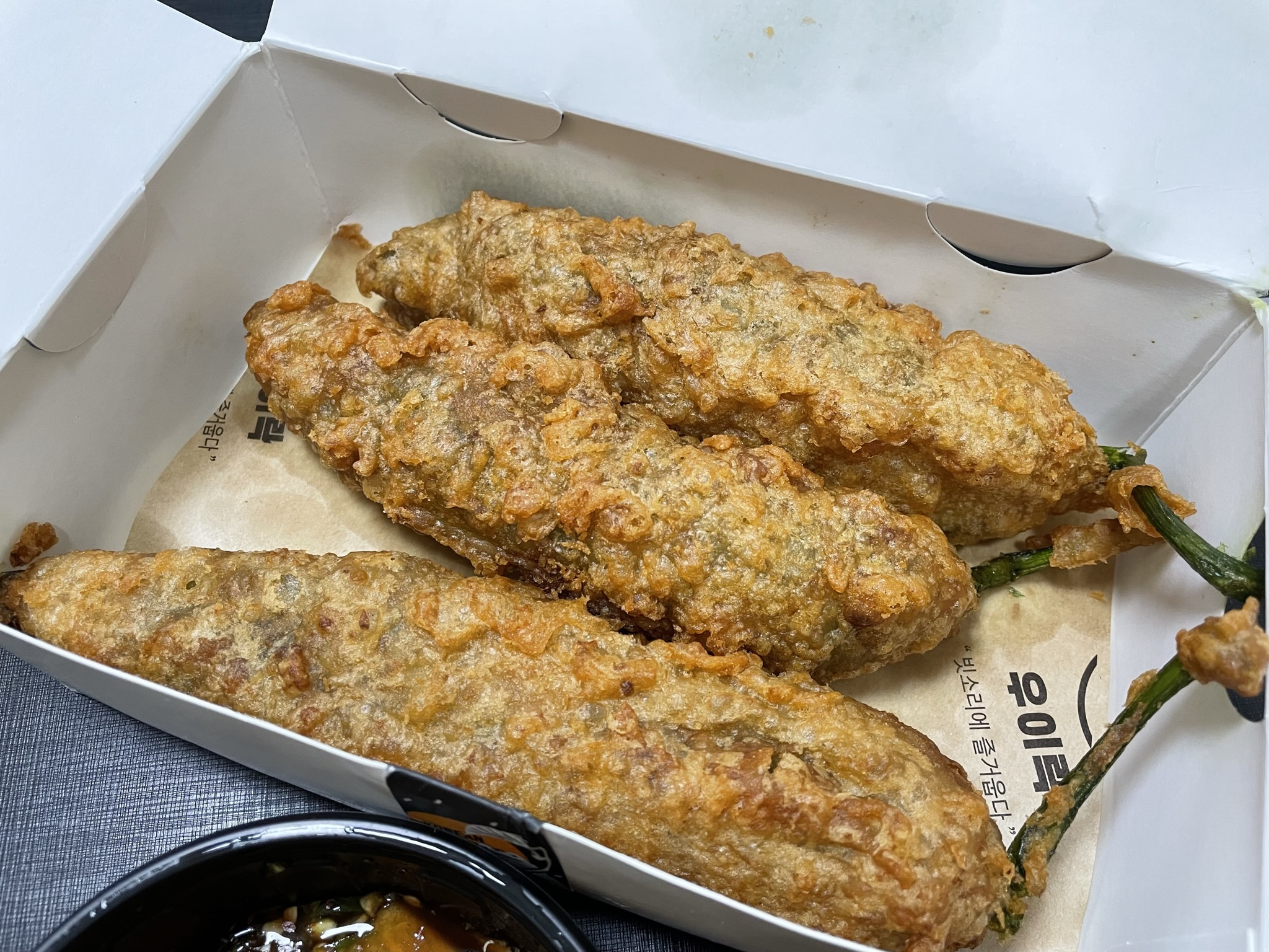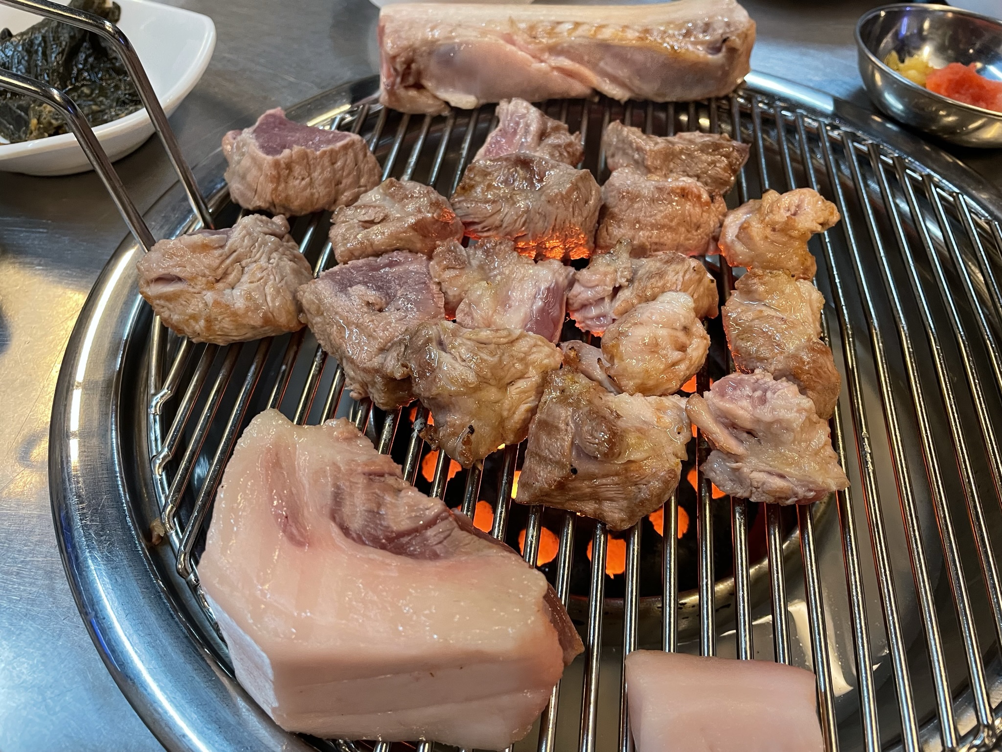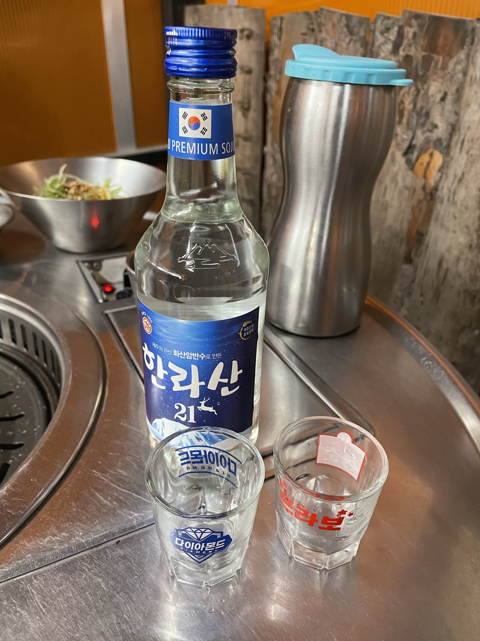 코로나 시절이라 테이블에 투명칸막이가 있었다.