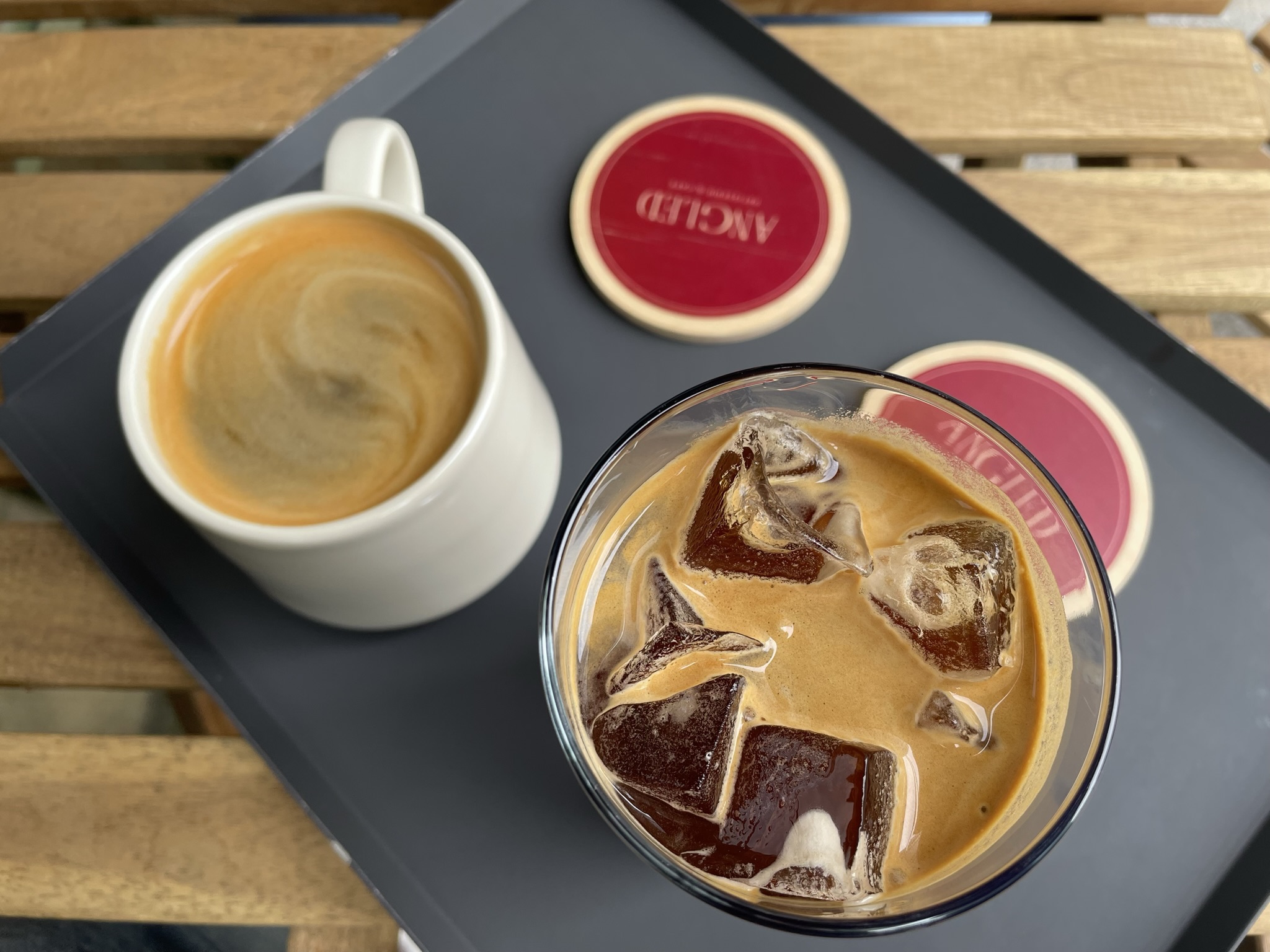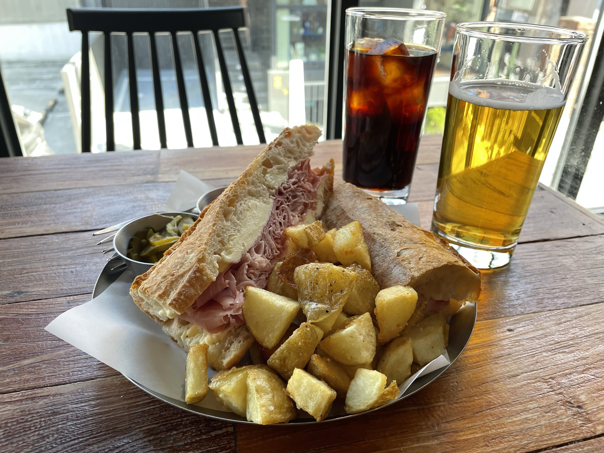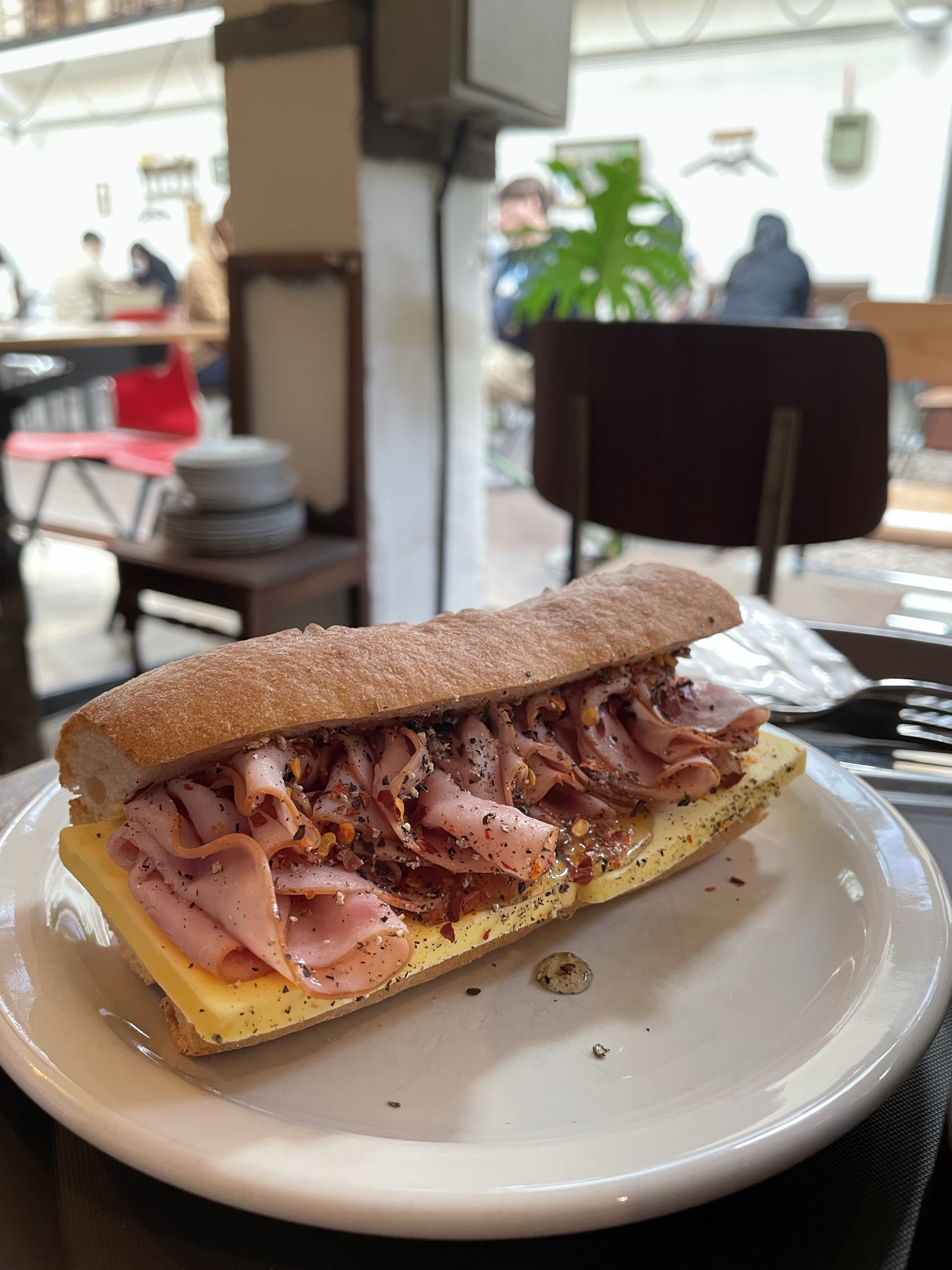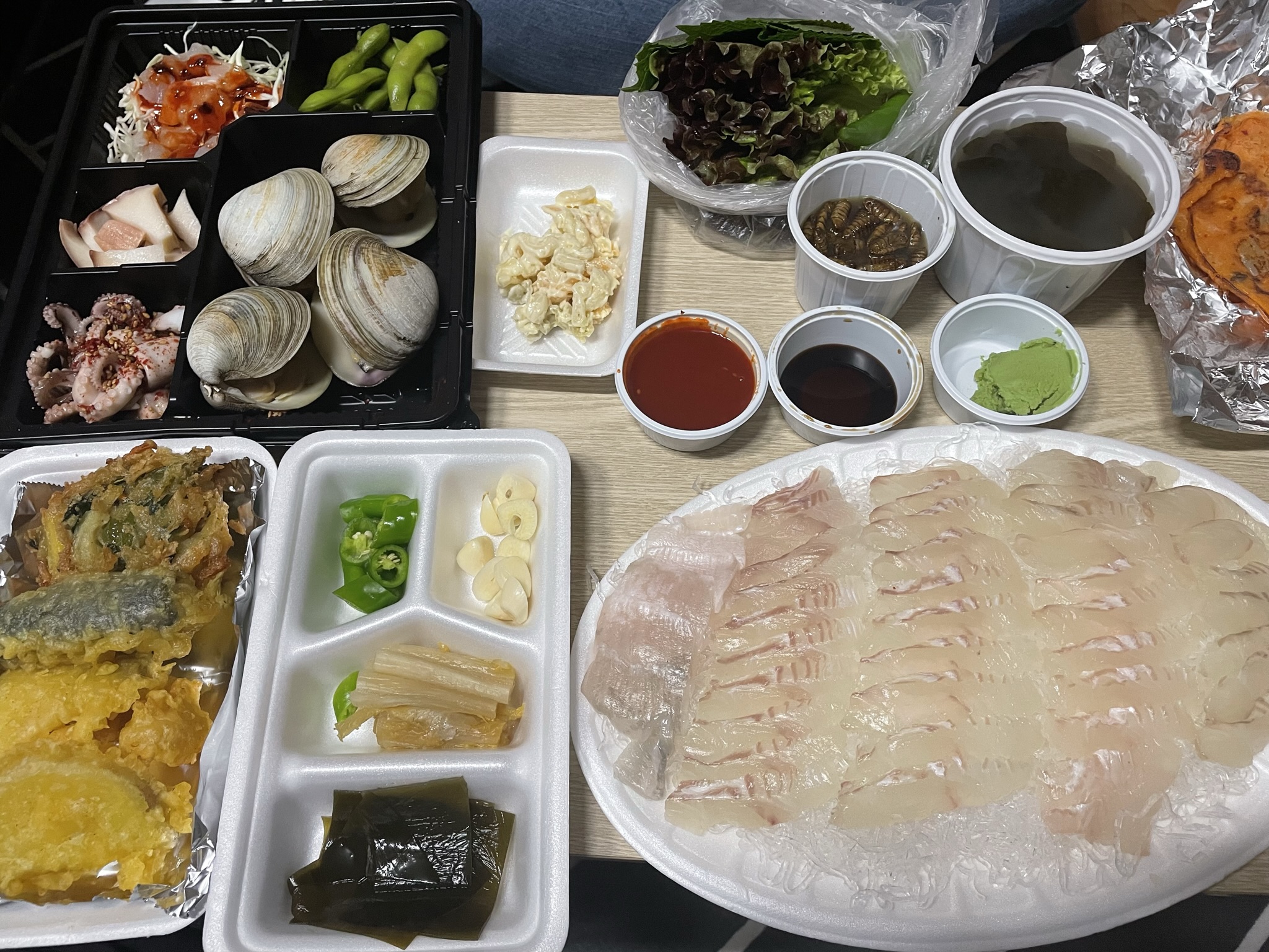 코로나 시절이라 테이블에 투명칸막이가 있었다.