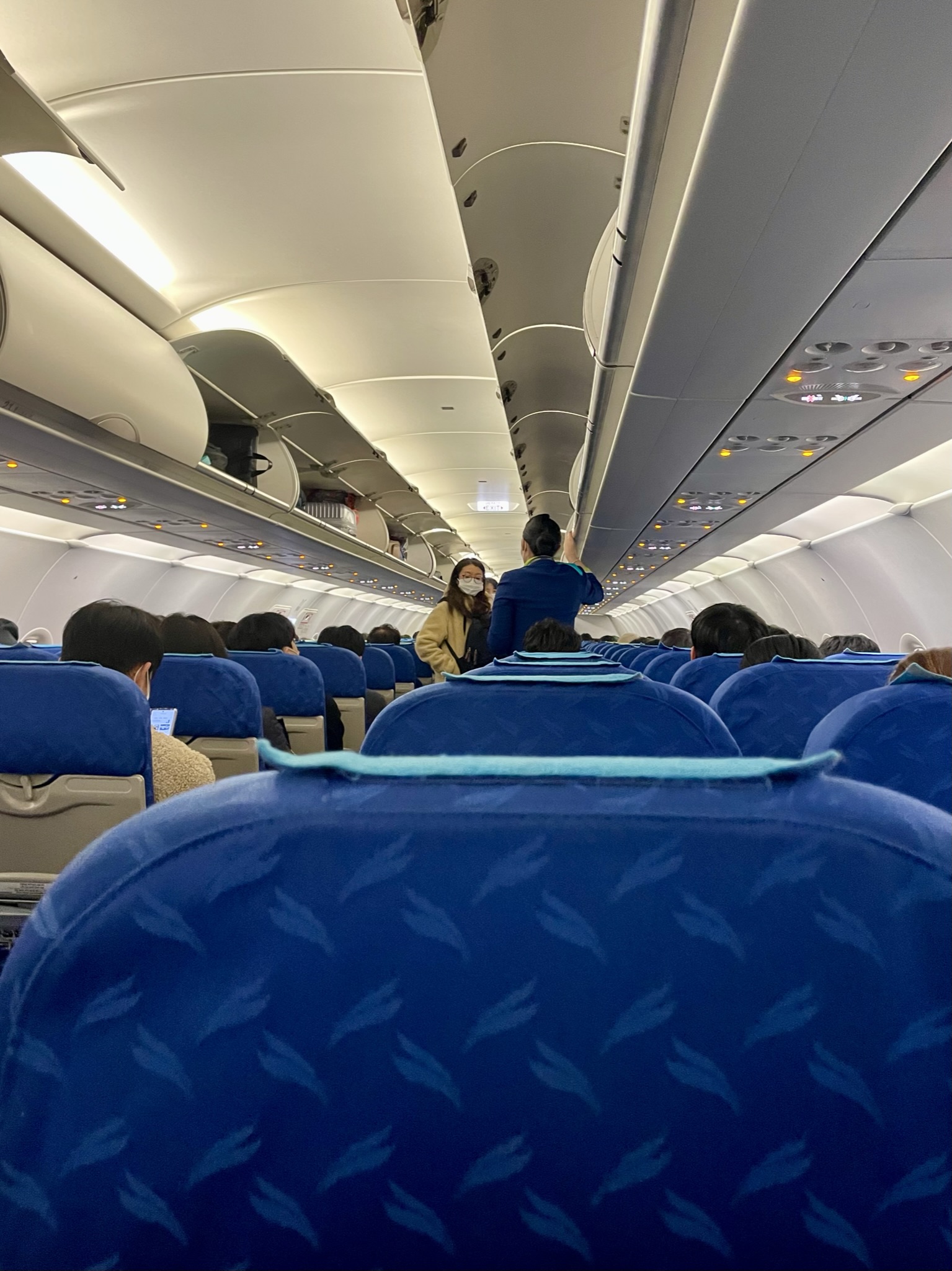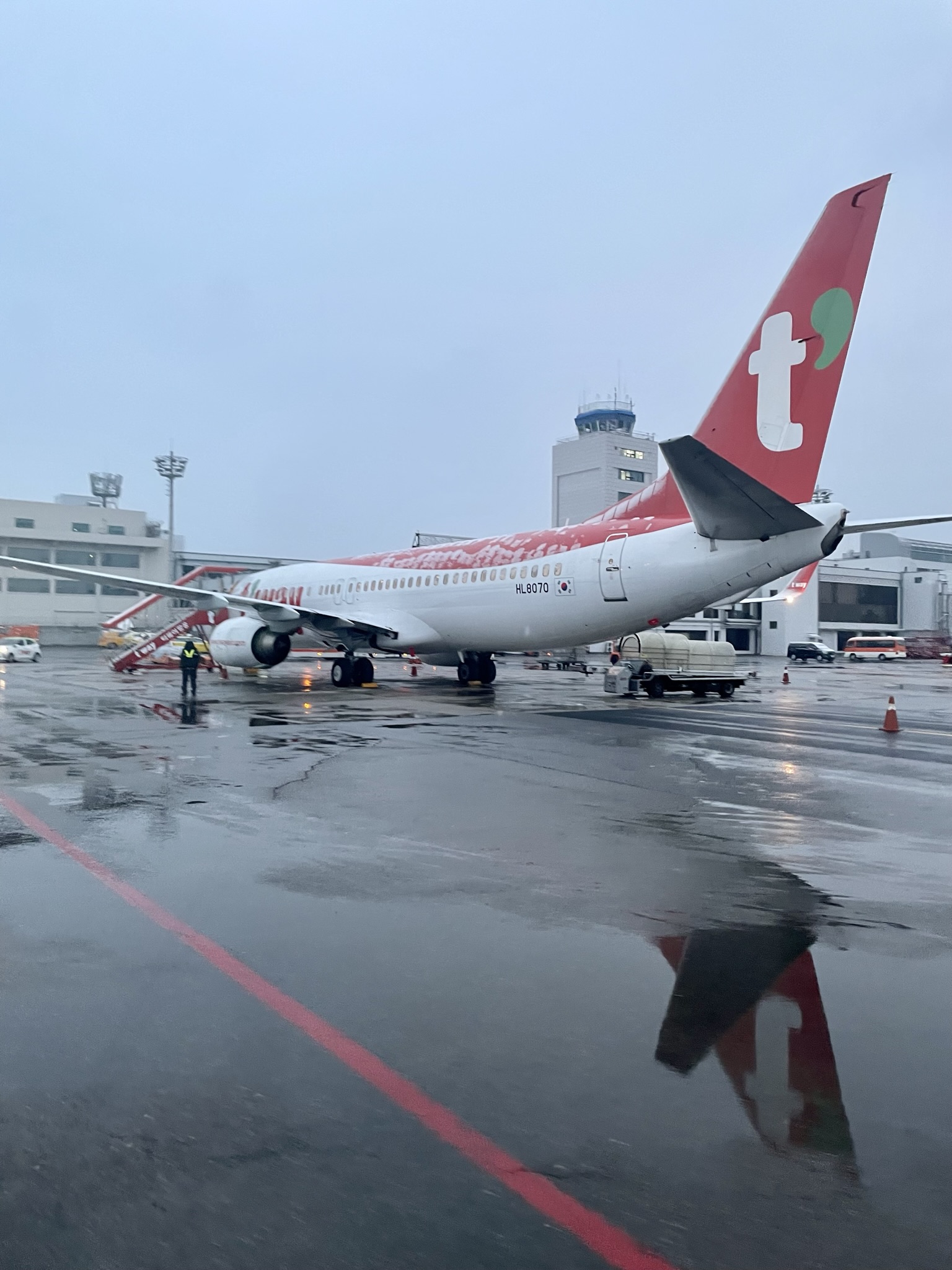 간밤에 내린 눈이 항공기 동체에 조금 남아있음