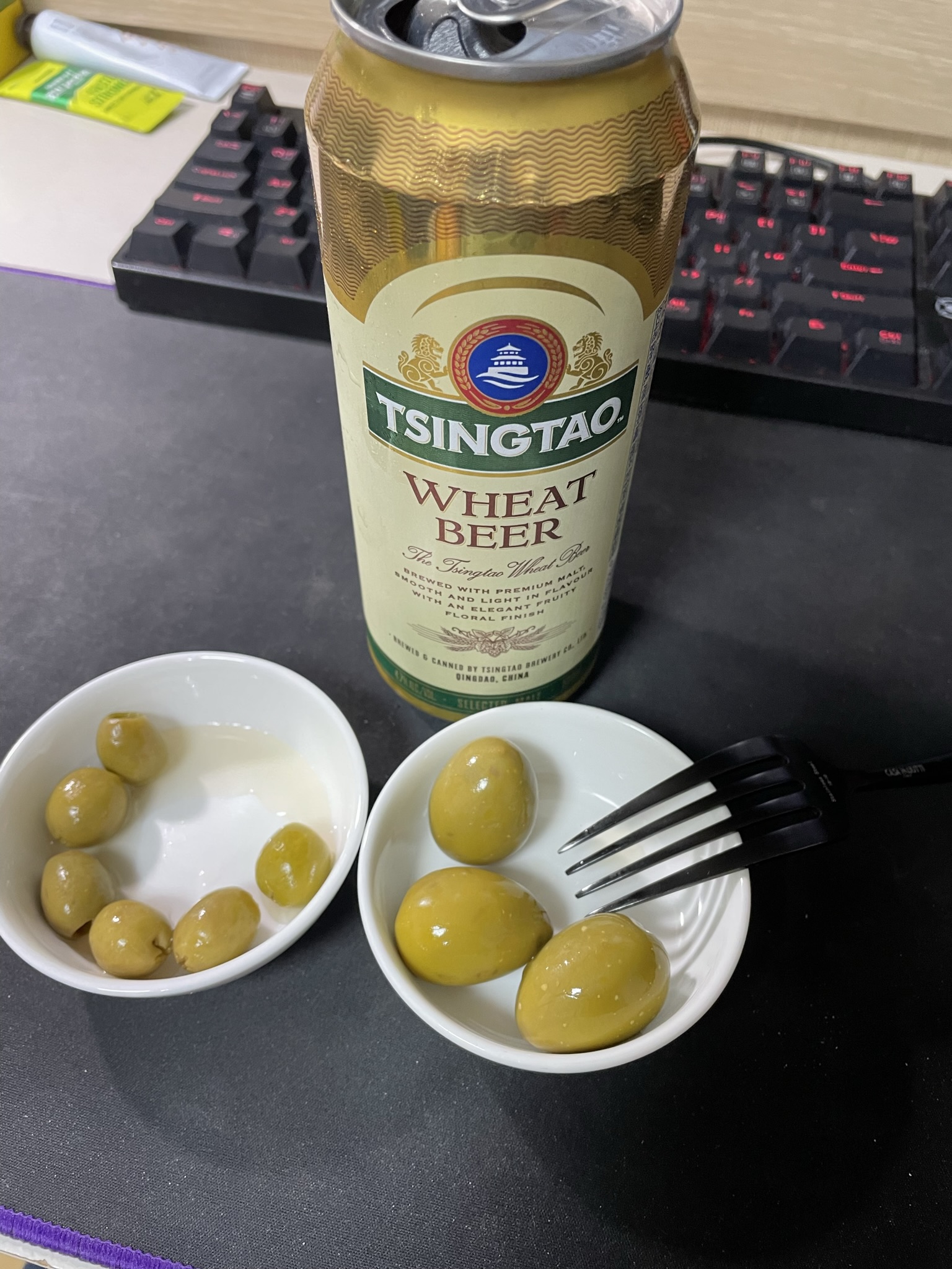 올리브 안주에 캔맥