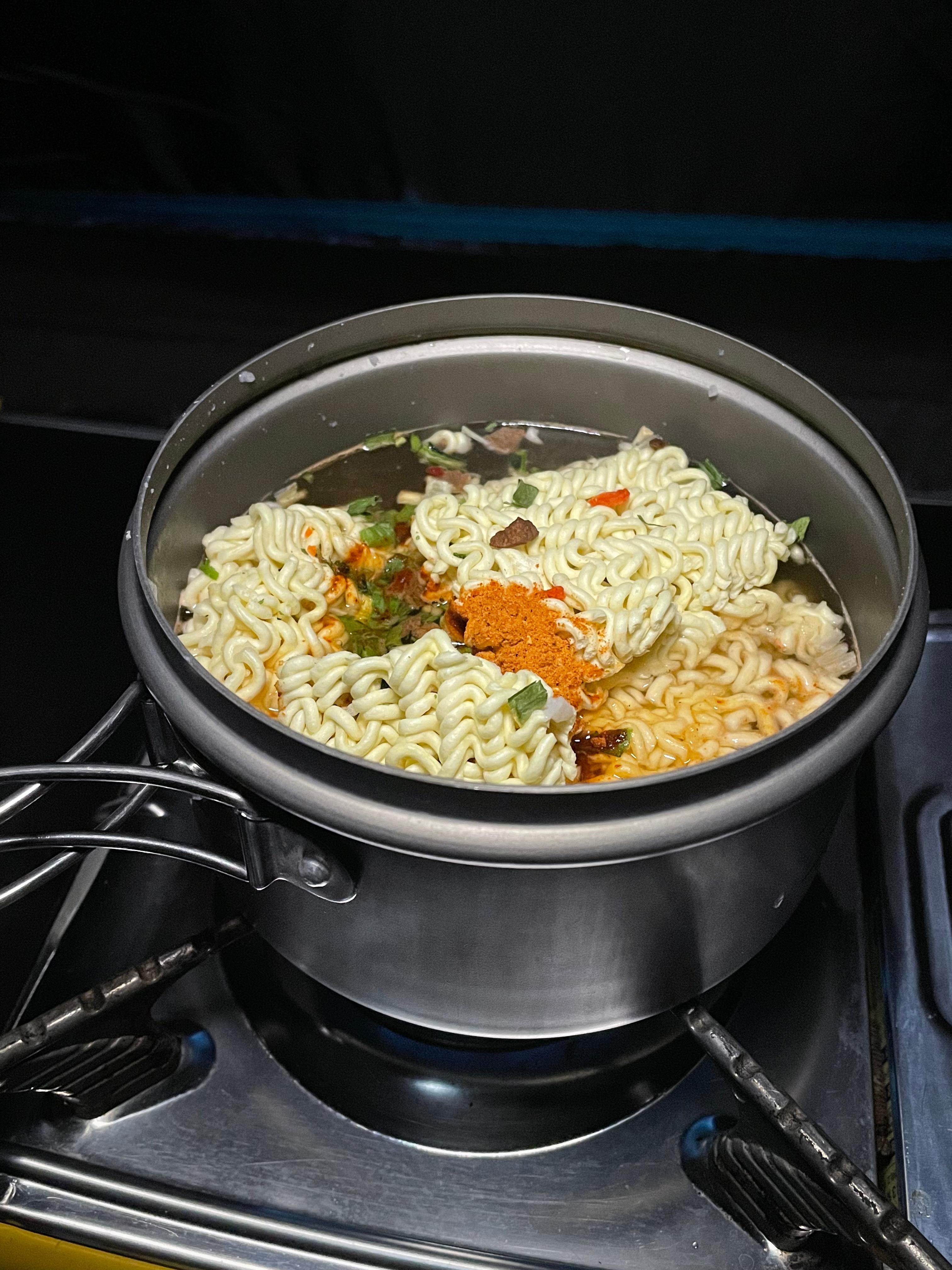 몸을 덥히기 위해서 아침으로 라면을 끓였다
