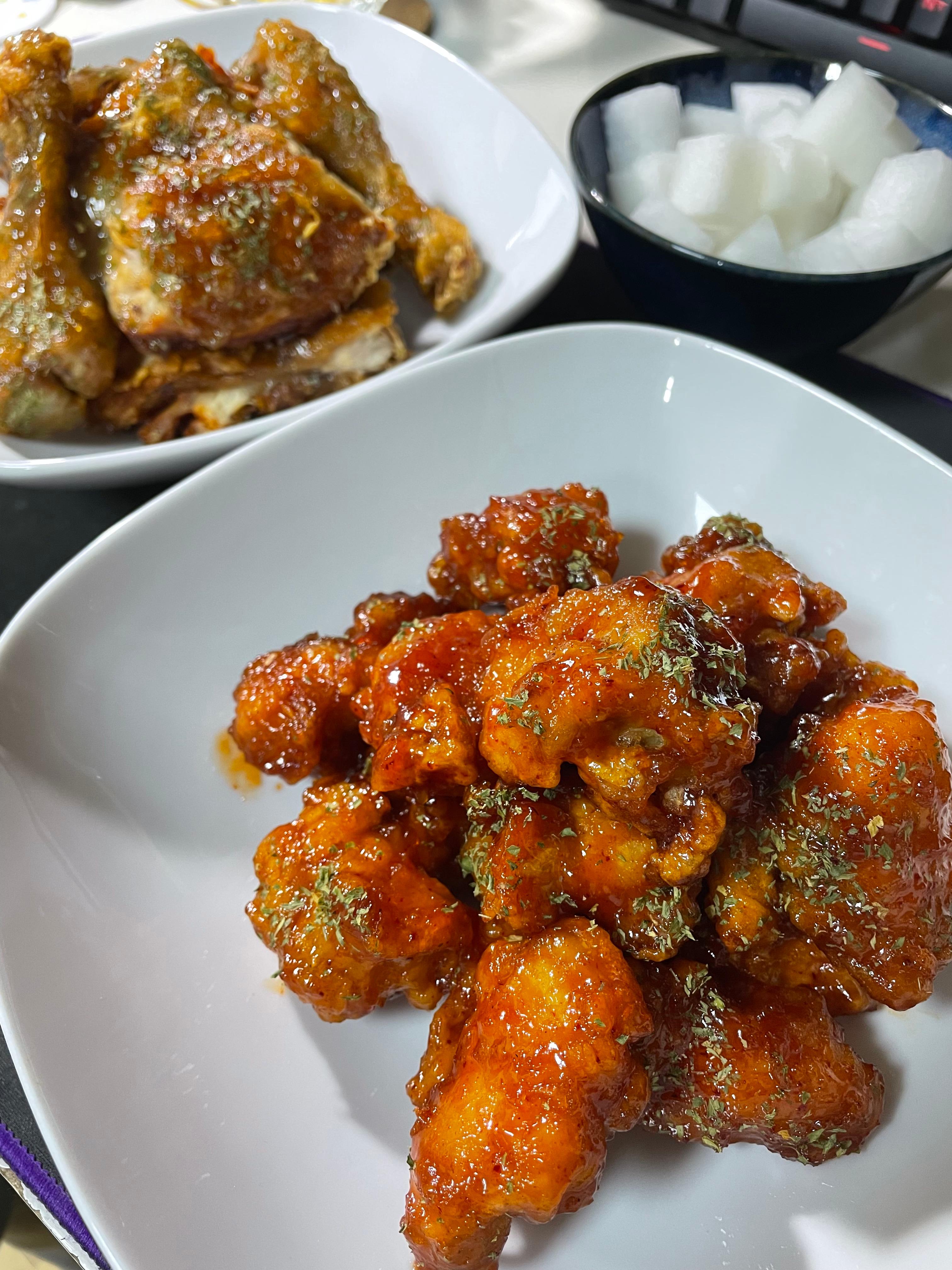 치킨, 닭강정을 포장해와서 먹은날