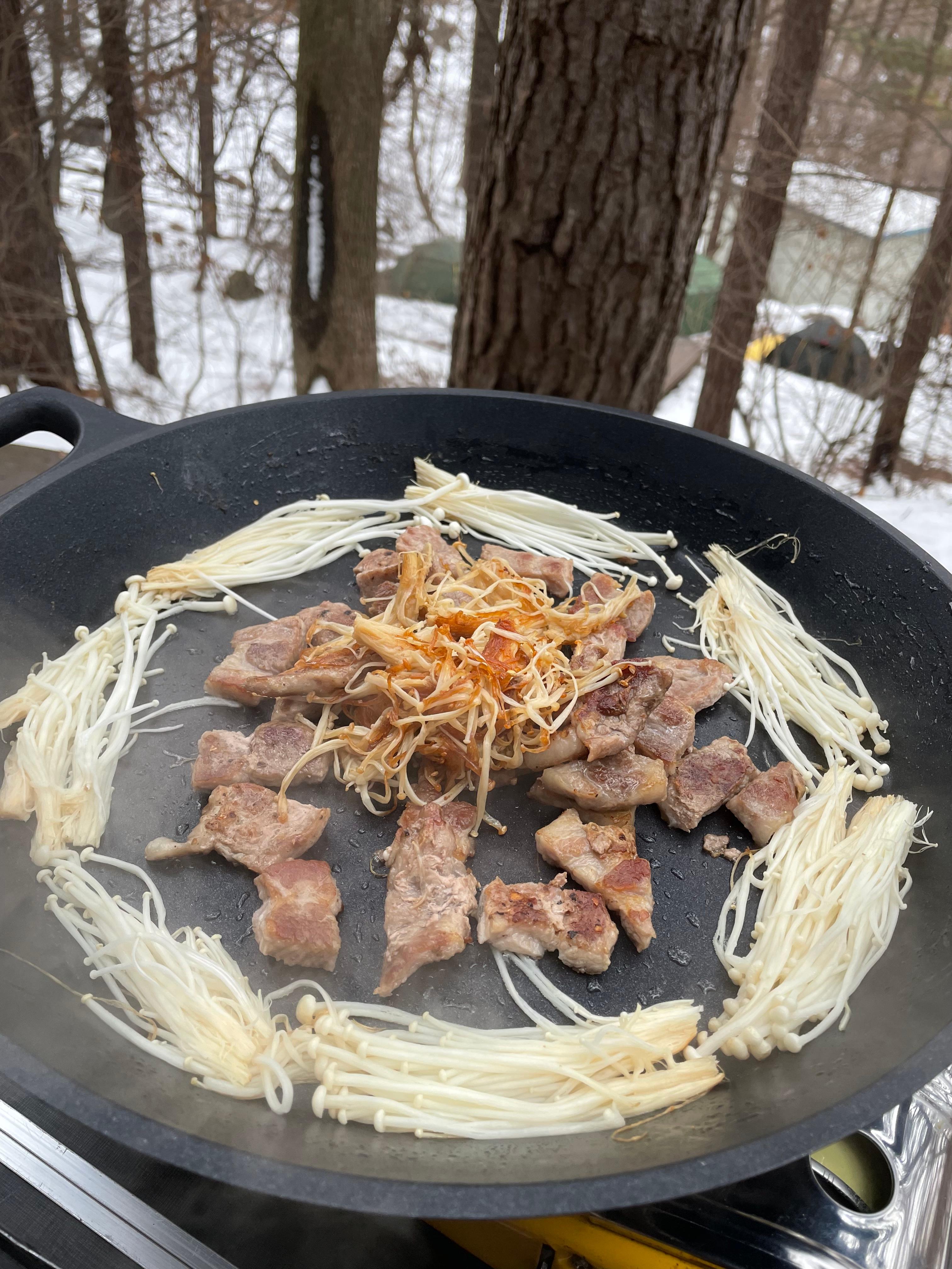 춥지만 먹어야 하므로 고기도 구워준다